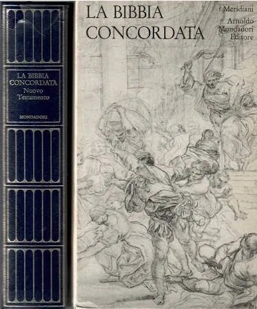 In-16, 3 volumi, similpelle editoriale, custodia, titolo oro al dorso, pp. XVIII,1326;1334;812. Lantico testamento è contenuto in una custodia, in due volumi.Il nuovo Testamento è in una custodia a partePrima edizione nella collana I Meridiani Mondadori. In ottimo stato (fine copy).