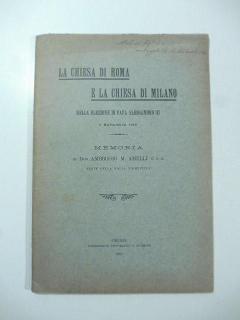 La Chiesa di Roma e la Chiesa di Milano nella elezione di Papa Alessandro III, 7 settembre 1159. Memoria