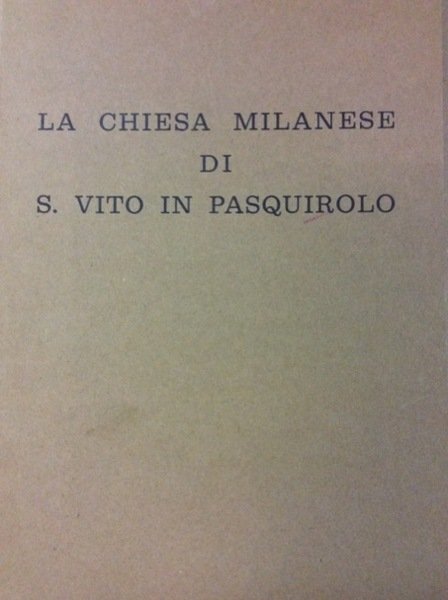 • STORIA LOCALE MILANO, MILANO S. VITO IN PASQUIROLO CHIESA