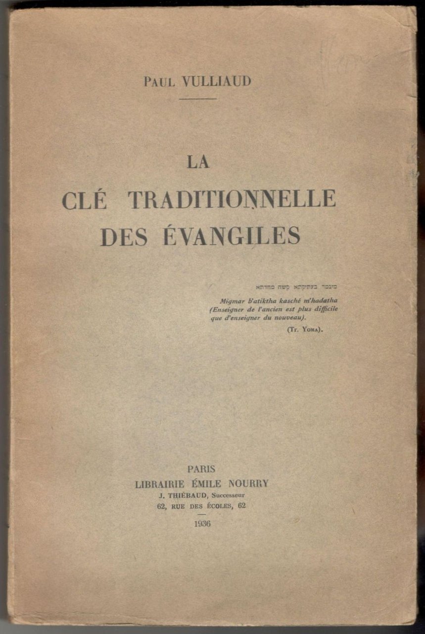 In 8°, pp. 302. Brossura editoriale. Copia in ottimo stato. Capitoli: La controverse entre les Puristes et les Hébraïsants - La tradition philologique - La tradition philologique dans les temps modernes - L'actualité de la controverse gréco-sémitique - La langue néo-testamentaire et les découvertes modernes - L'influence de Deissmann - Les deux plus récentes traductions des Evangiles d'après le grec moderne et d'après le substrat sémitique - Le style des Evangiles et les théories de P. Jousse - Particularités du style néo-testamentaire - Applications - Le IVè Evangile, grec ou araméen?