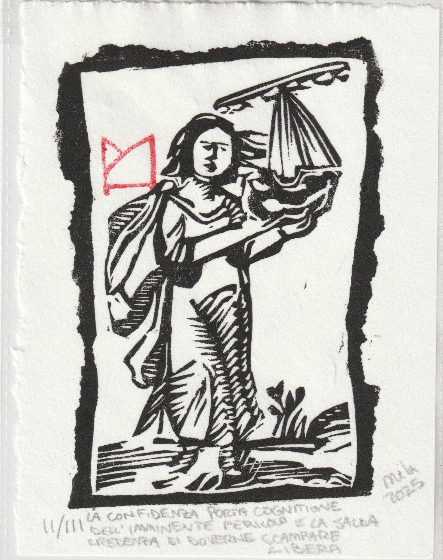 Linoleum, stampato a mano su carta Hahnemhle 150 g., esemplare II/III, matrice 90 x 130 mm, Isola di Redonda, 2025