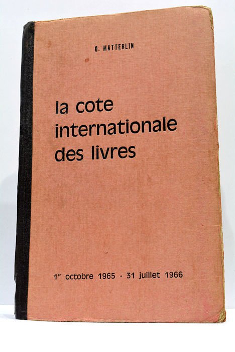 IX. 375 pages. 2 feuillets. (24,5x16 Cm). Cartonnage imprimée. Dos lisse renforcé. Coins emoussés. Cet ouvrage donne la valeur en 1966 des livres anciens et modernes dans le domaine de la bibliophilie et de l'érudition. A côté des prix, sont indiqués les principaux renseignements sur l'édition et l'état des livres vendus dans l'année. Index des ventes. Liste des experts. Cotes des livres.