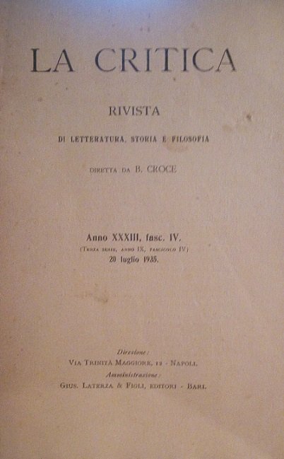 LA CRITICA - RIVISTA DI LETTERATURA, STORIA E FILOSOFIA DIRETTA DA B. CROCE - ANNO XXXIII, FASC. IV - 20 LUGLIO 1935