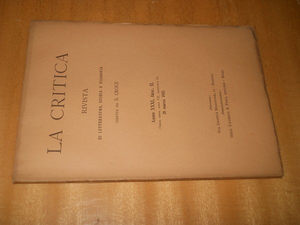 LA CRITICA. RIVISTA DI LETTERATURA, STORIA E FILOSOFIA - fascicolo 2 - 1933