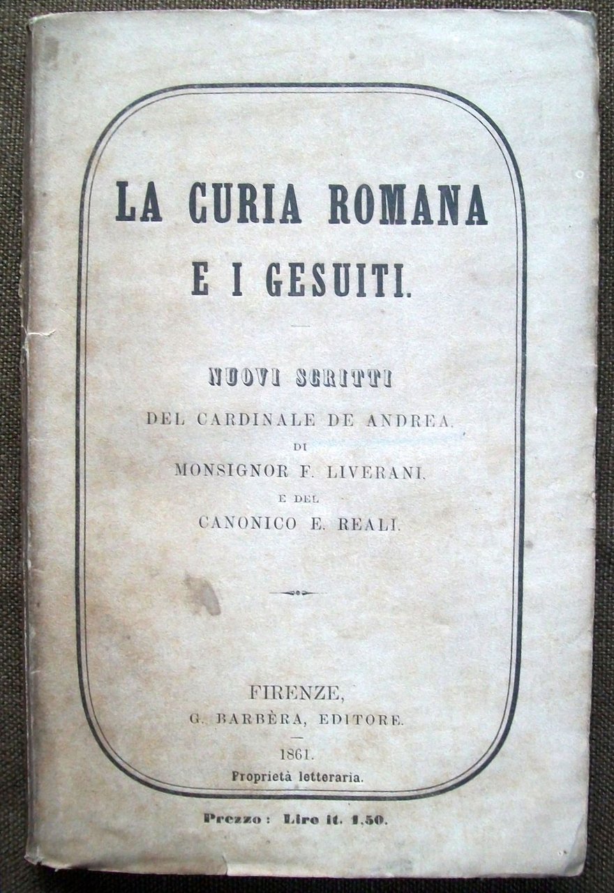 In 16°, pp. 105. Brossura editoriale a stampa. Prima edizione. Raccolta di documenti che si scagliano contro i Gesuiti. Esemplare molto buono.
