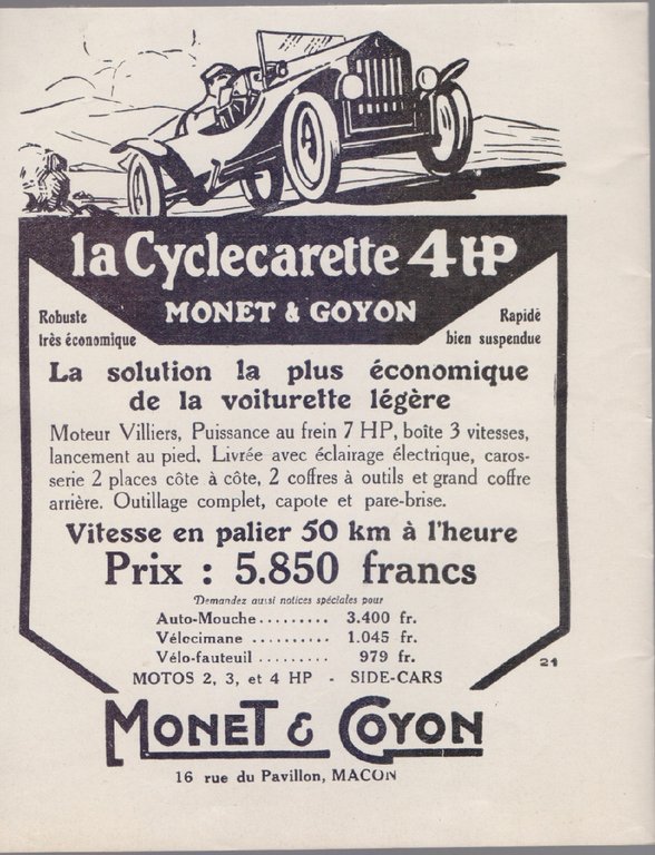La Cylecarette 4HP Monet & Goyon. Advertising 1925