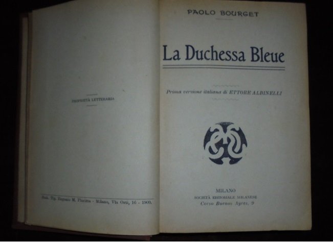 MILANO, SOCIETA EDITRICE, 1909. In 16∞: pp. 239. Segue leg. assieme: Anna Vertua Gentile, A la faggeta stampato a Sesto San Giovanni, Madella Editrice 1915. : pp. 203. Leg. in t. tl. non edit. Bruniture.