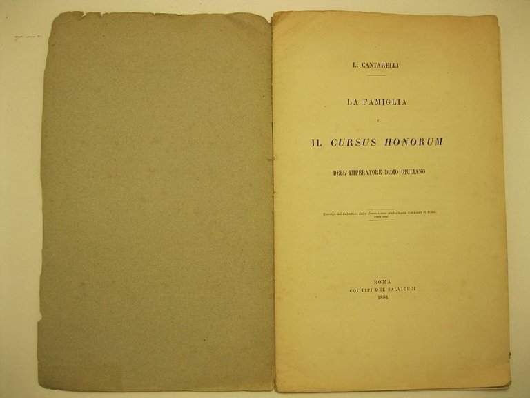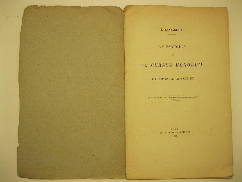 La famiglia e il Cursus Honorum dell'imperatore Didio Giuliano Estratto dal Bullettino della Commissione archeologica Comunale di Roma, anno 1884