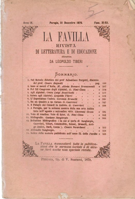 La Favilla Rivista Di Letteratura E Di Educazione Anno IX, Perugia 31 Dicembre 1879, fas. XI-XII