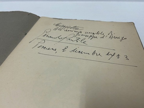 In 8°, br., pp. 35 con alcune ill. nel t. Dedica e firma manoscritta . Edizione tirata in 500 copie, esempl. n. 319