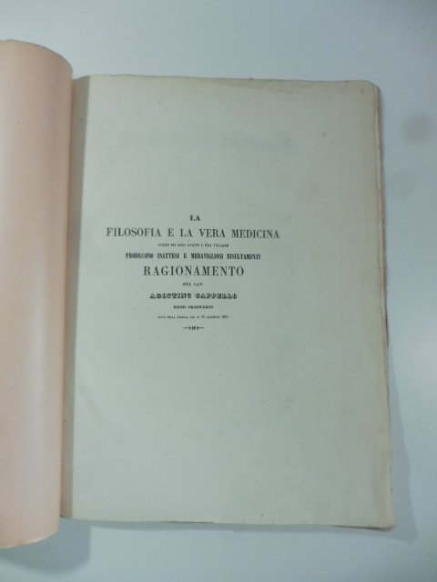 La filosofia e la vera medicina sorte 500 anni avanti l'era volgare producono inattesi e meravigliosi risultamenti. Ragionamento