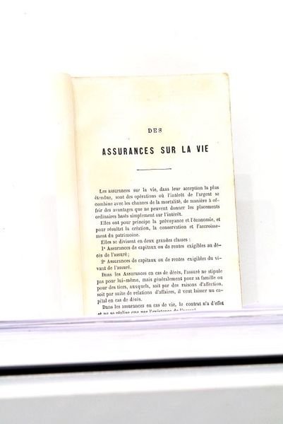 36 pages (10x15cm). Broché. Papier très légèrement bruni. Exemplaire court de marges. Finances. Assurances.