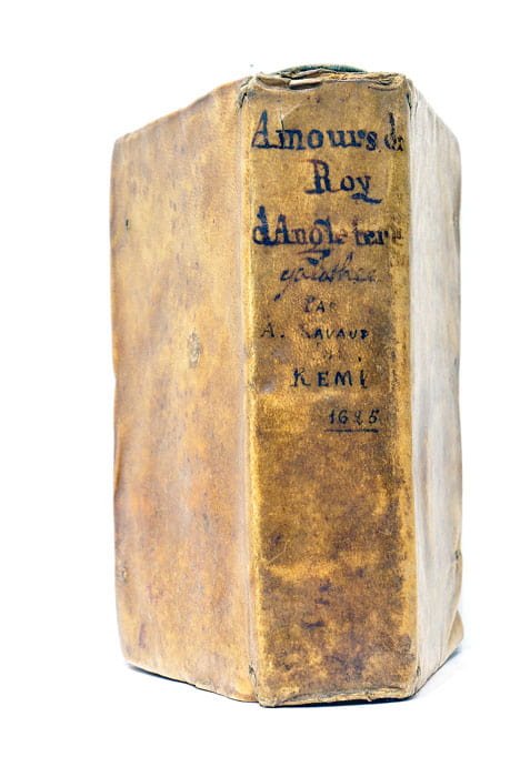 6 feuillets. 558 pages. (16x10 Cm). Plein vélin de l'époque. Titre manuscrit au dos. Coins et coiffes émoussés. Dos décollé. Abraham Ravaud, dit Abraham Remy, Abraham Remi ou Abrahamus Remius, né à Remy (Oise) en 1600 et mort en 1646, est un poète français néolatin, professeur au Collège royal. Il est connu surtout pour ses poésies latines, qui furent remarquées par ses contemporains pour leur verve et leur pureté de style. Ce livre est dédié à la reine d’Angleterre. Abraham Remy s’adresse à la toute récente reine d’Angleterre Henriette-Marie de France, sœur de Louis XIII très récemment marié au roi Charles 1er d’Angleterre, mariage célébré à Notre-Dame de Paris, par procuration le 11 mai 1625. Le roi Charles 1er est roi depuis très peu de temps. Ce livre décrit donc quelques années, approximativement 1622 – mai 1625 pendant lesquelles se décide le mariage du Prince de Galles (le futur Charles 1er) avec la sœur du Roi de France. Le récit présente sous un jour plaisant et romancé les faits historiques qui ont précédé ce mariage. Les personnages historiques, les lieux sont changés : Chypre symbolise la France et Nicosie, Paris ; la Cilicie l’Angleterre ; L’Allemagne la Mésopotamie. Rodiléon est le Roy d’Angleterre, Le Prince des Astiagés, le Prince de Galles, Elpisas, Buckingham, Dicée est le Roy Louis XIII, Galatée, Henriette-Marie, etc… Cette correspondance entre les personnages imaginaires et réels, entre les lieux n’est pas cachée. Elle est annoncée dès le début de l’ouvrage. Ce genre a connu un réel succès au début du XVIIème siècle. Le livre commence par une chasse au sanglier du prince des Astiagés dans le bois de la Victoire. Il y rencontre Galatée. Les révoltes, les conflits entre nobles qui ont lieu durant cette période sont aimablement représentés sous forme d’un ballet où la Discorde est personnifiée. Le Prince des Astiagés, accompagné de Elpisas (Buckingham) part en direction de l’Espagne mais fait étape à Nicosie où il visite le magnifique château du roi (Le Louvre à Paris). D’autres parties du récit évoquent la cour d’Espagne ou la situation en Bohème (premières années de la guerre de trente ans). Publié l’année même du mariage, il a peut être été imprimé pour cet événement et accompagné la cour qui s’est rendue jusque Amiens pour accompagner la mariée en route pour son destin. 1 feuillet dérelié. Petite trace des vers sur quelques pages à la fin de l'ouvrage. Rousseurs éparses. Plis et traces de plis.