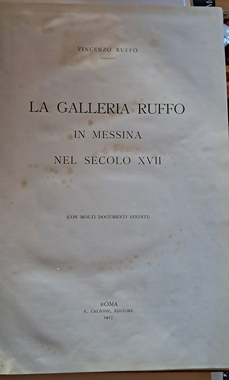LA GALLERIA RUFFO IN MESSINA NEL XVII SECOLO CON MOLTI DOCUMENTI INEDITI