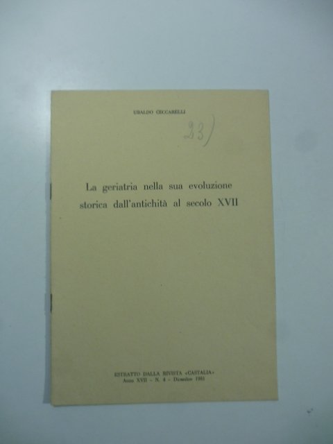 La geriatria nella sua evoluzione storica dall'antichita' al secolo XVII