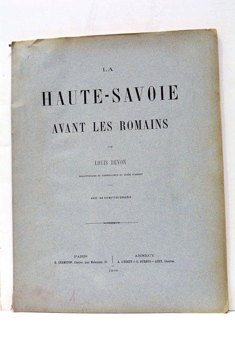 60 pages. 2 feuillets. (32,5x24,5 Cm). Broché. Couverture imprimée. Petits accrocs. Sinon en bon état. Louis Revon prend ses fonctions de conservateur au musée d'Annecy en 1860. Durant 31 ans, il enrichit les collections de peintures, de moulages, de sculptures, d'estampes, de produits industriels, ainsi que de nombreux témoignages ethnographiques, anatomiques et anthropologiques. Exemplaire non coupé.