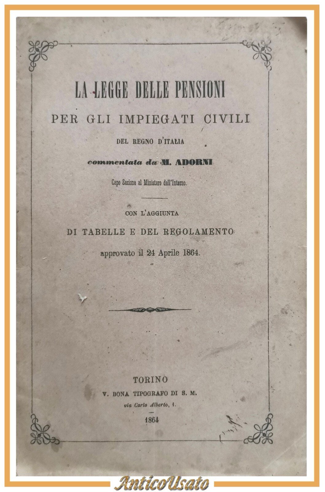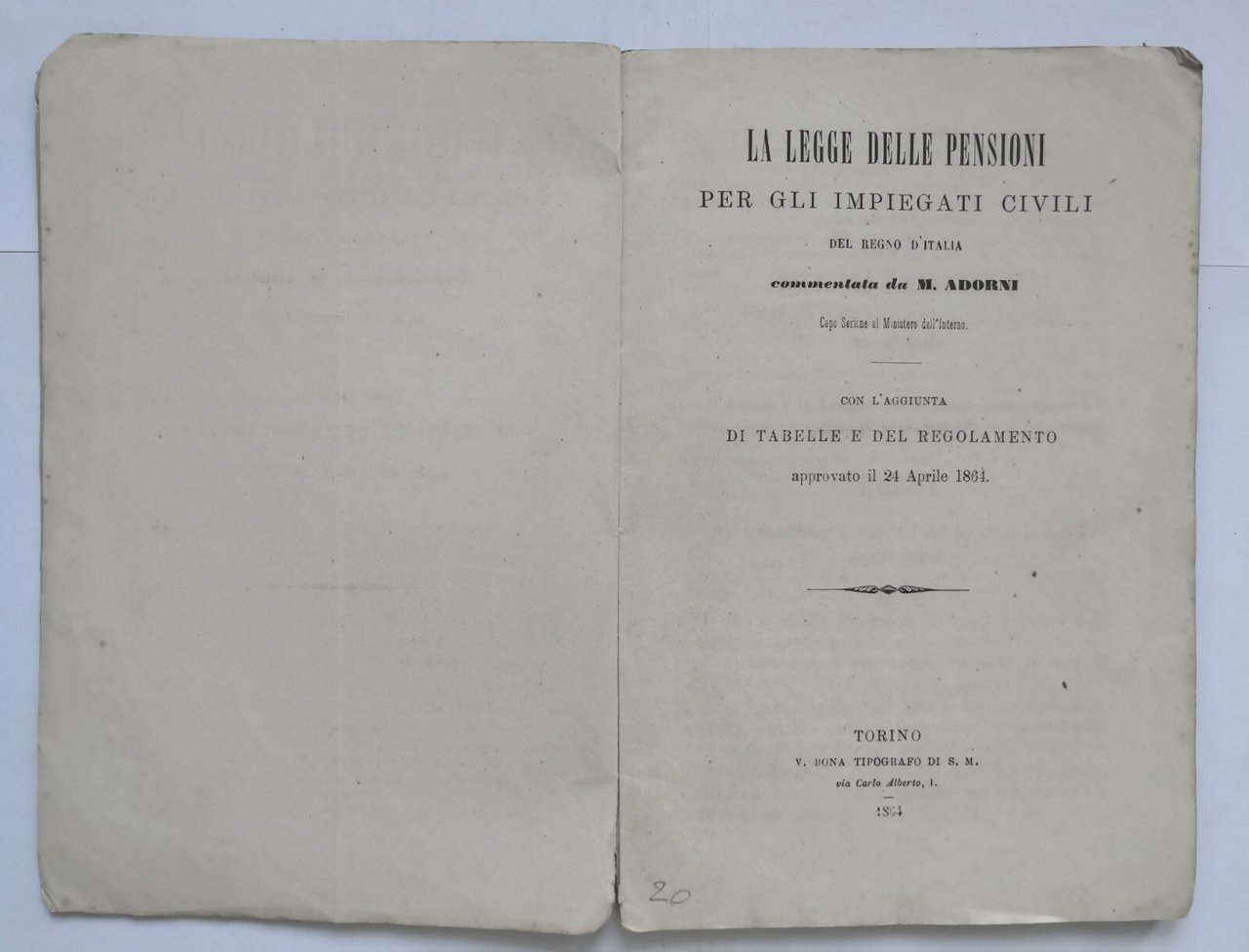 LA LEGGE DELLE PENSIONI PER GLI IMPIEGATI CIVILI DEL REGNO D'ITALIA 1864 libro