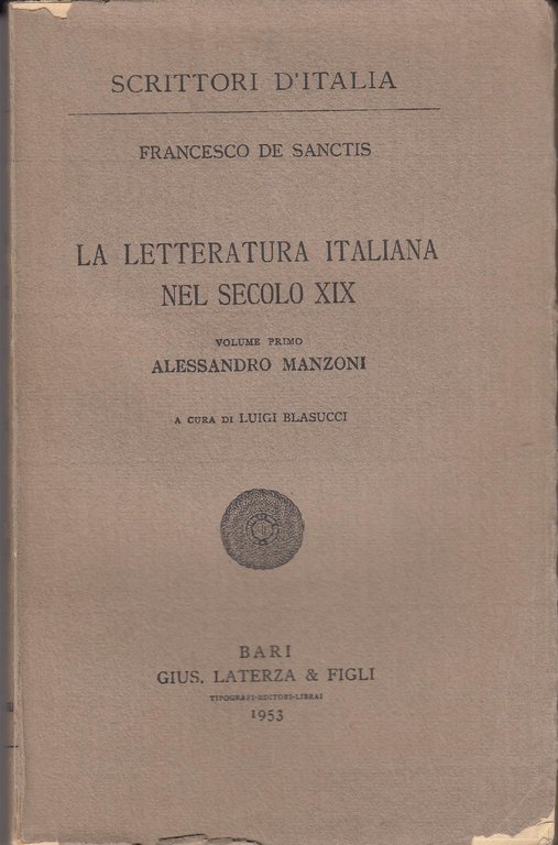 La letteratura italiana nel secolo XIX Volume Primo Alessanrdo Manzoni