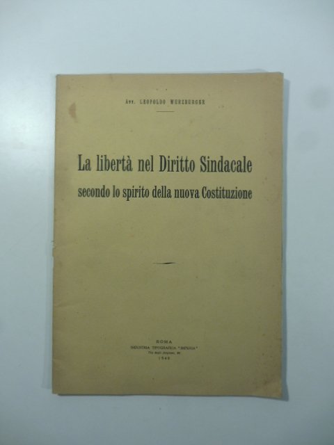 La liberta' nel Diritto sindacale secondo lo spirito della nuova Costituzione