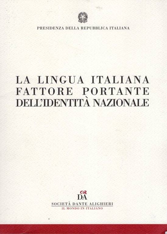 Il volume raccoglie i materiali dell'incontro svoltosi il 21 febbraio 2011 al Palazzo del Quirinale su " La lingua italiana fattore portante dell'unità nazionale " .  Allegati n. 2 C D  in ottavo Copertina flessibile 79 Molto buono (Very Good) Libro usato proveniente da collezione privata .La copertina riporta piccole imperfezioni da movi9mentazione.Interno in buonissime condizioni..
