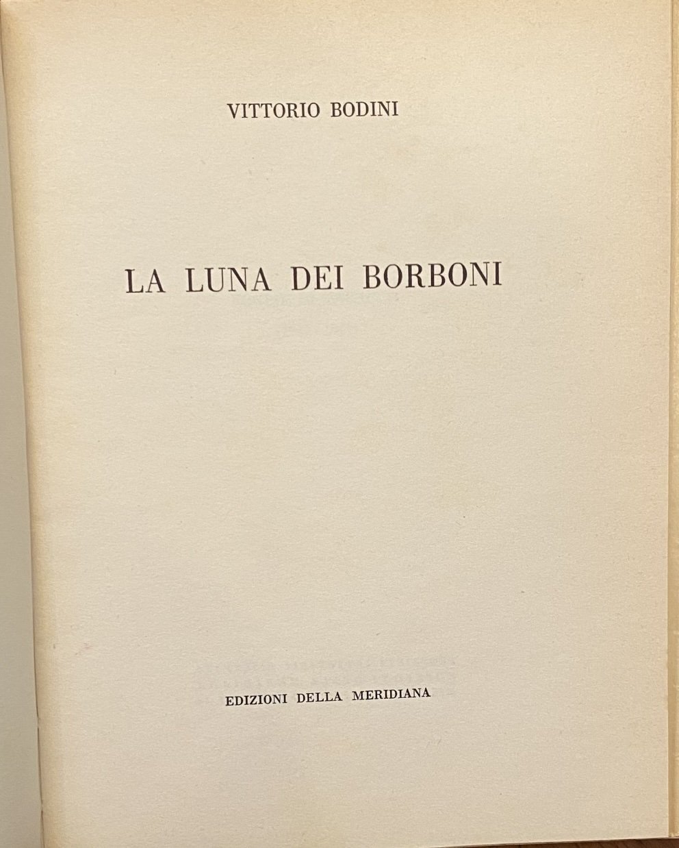 Bodini Vittorio, La luna dei Borboni, Edizioni della Meridiana, Milano, 1952