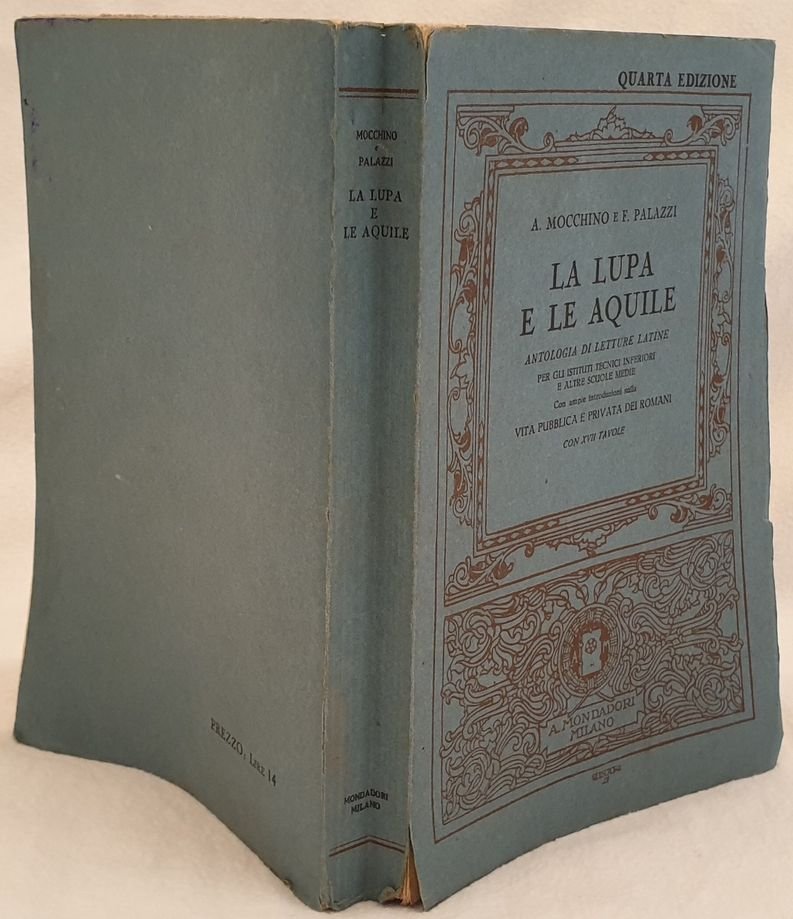 Quarta edizione del 1931 di questa antologia di letture latine scritte da Mocchino e Palazzi. Testo latino con note in italiano.Ampie introduzioni sulla vita pubblica e privata dei romani. 17 planches illustrate all'interno. Copertina illustrata da Cisari. In buone condizioni e completo.Copertina editoriale in buone condizioni generali con lievi usure ai margini e dorso. Legatura in buone condizioni. Pagine in ottime condizioni con rare fioriture. In 8. Dim. 20,5x14 cm. Pp. VIII+471+(1). Fourth edition of 1931 of this anthology of italian readings written by Mocchino and Palazzi. Latin text with notes in italian. Wide introduction about public and private life of romans. 17 planches illustrated inside. Cover illustrated by Cisari. In good conditions and complete. Editorial cover in good general conditions lightly worn in the extremities. Binding in good conditions. Pages are in very good conditions with occasional foxings. In 8. Dim. 20,5x14 cm. Pp. VIII+471+(1).