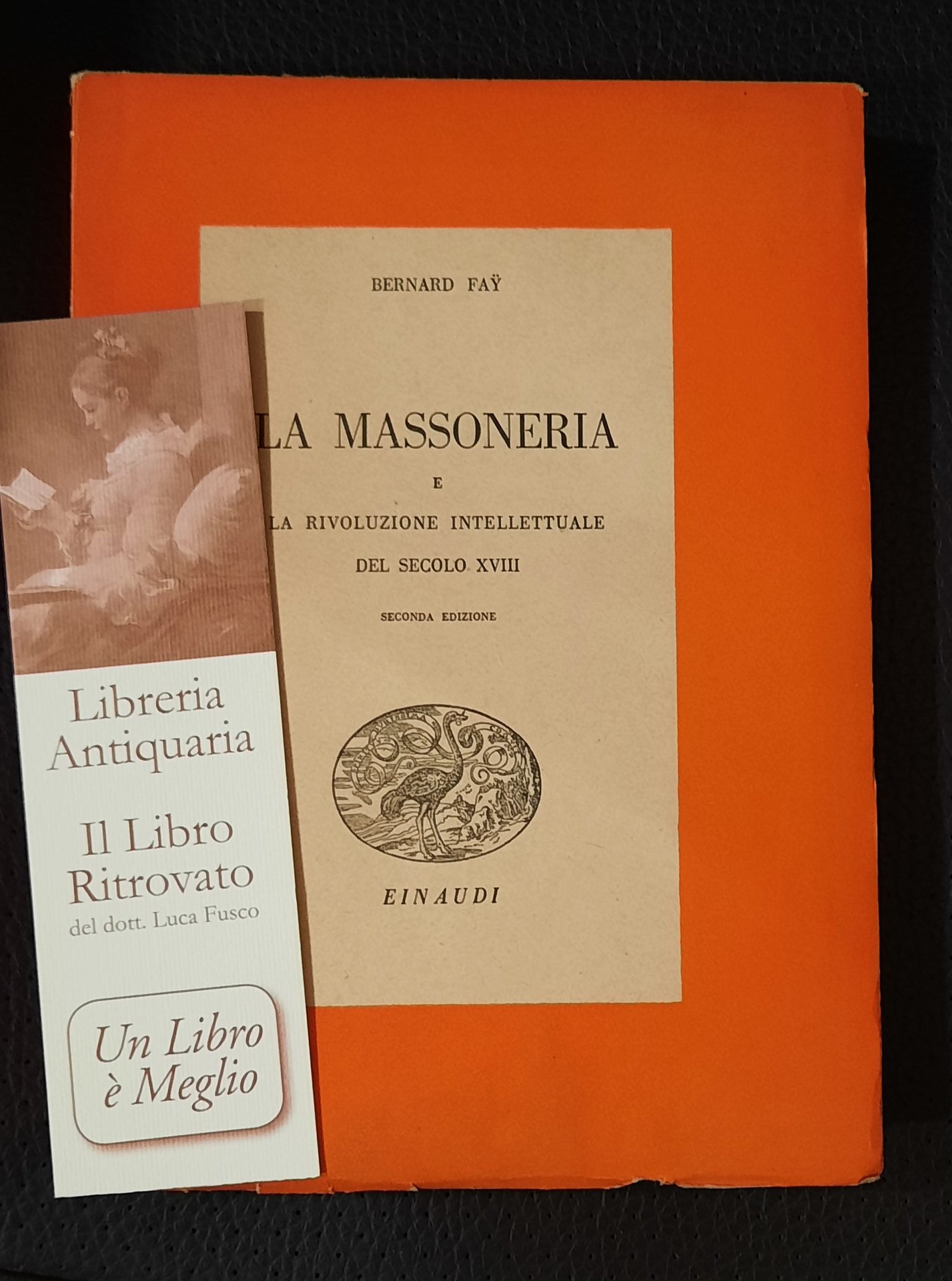 2. Edizione. Torino-Einaudi, 1945 in 8° pp. 210. Dall'indice: Il conte di Boulainvilliers astrologo e profeta; Desaguliers e lo spirito della Massoneria; Primato della Grande Loggia di Londra; L'età dei Duchi inglesi; Frivolezza francese e gli Alti Gradi massonici; Massoneria nell'esercito americano; Rottura tra la Massoneria francese e il Cristianesimo. Brossura editoriale. Perfette condizioni.