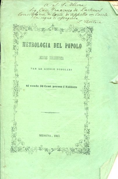 La Metrologia del Popolo ossia il sistema metrico e monetario decimale esposto nel modo più breve, semplice e chiaro. Lezione dialogistica espressamente dettata per gli allievi delle scuole popolari. Seconda edizione