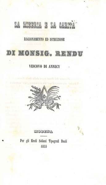La miseria e la carità. Ragionamento ed istruzione di Monsig. Rendu vescovo di Annecy. Estratto