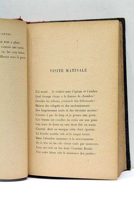 2 feuillets. 328 pages. (18x12 Cm). Demi-cuir rouge. Dos à nerfs doré. Coins et coiffes émoussés. Papier bruni. Rares taches. Exemplaire avec envoi autographe de le Magre à l'actrice Suzy Renard: "à Suzy Renard. à la très charmante artiste. affectueusement. Maurice Magre."