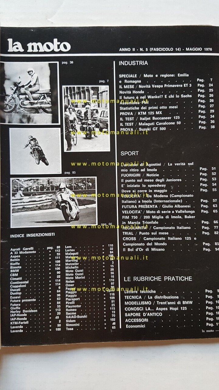 LA MOTO n. 5 1976 Prove Suzuki GT 500 KTM 125 MX Test Italjet 125 Buccaneer