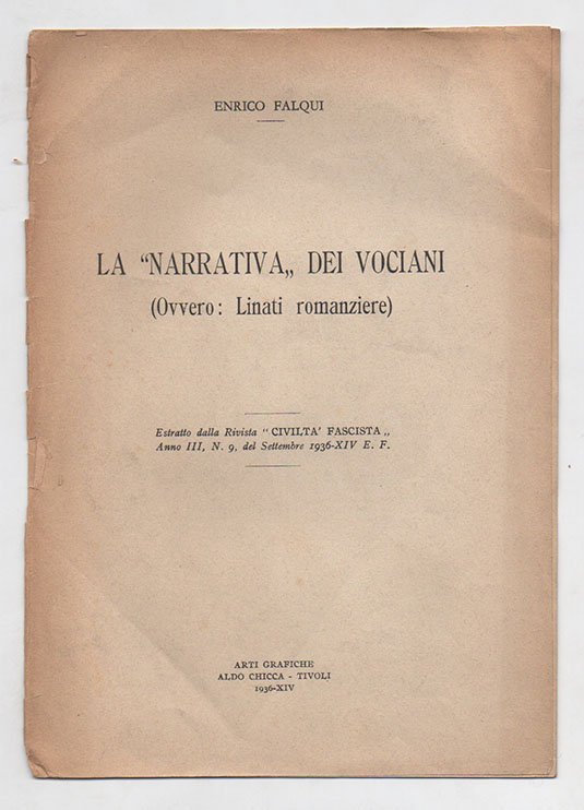 LIBROPrima edizione.Esemplare vissuto ma sostanzialmente integro.Estratto da «Civiltà Fascista», 9, 1936.