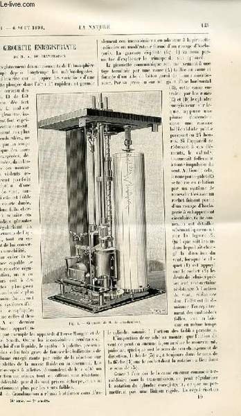6 août 1898. In-12. Broché. Bon état, Livré sans Couverture, Dos satisfaisant, Intérieur frais. Paginé de 145 à 160. Quelques gravures en noir et blanc dans et hors texte. . . . Classification Dewey : 500-SCIENCES DE LA NATURE ET MATHEMATIQUES