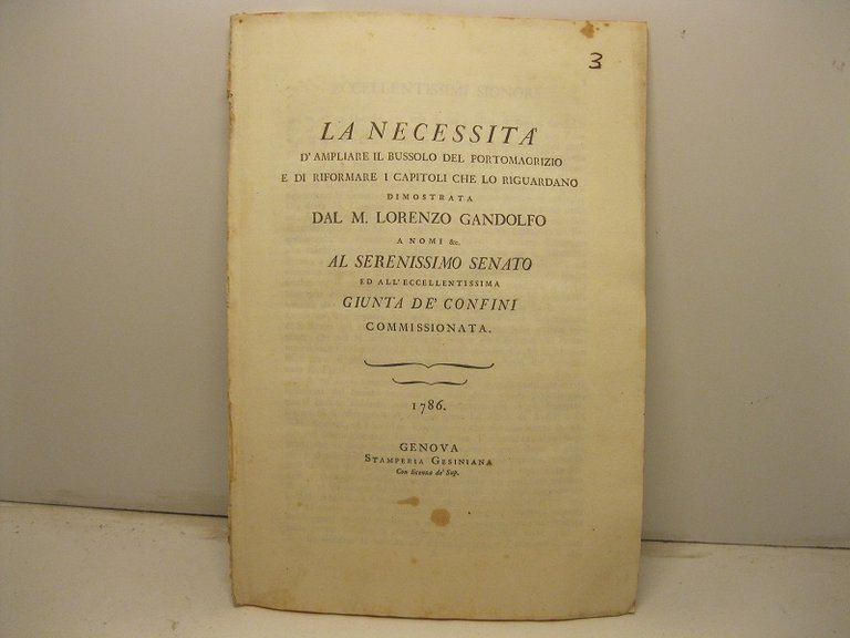 La necessita' di ampliare il bussolo del Portomaurizio e di riformare i capitoli che lo riguardano dimostrata dal M. Lorenzo Gandolfo. al serenissimo Senato