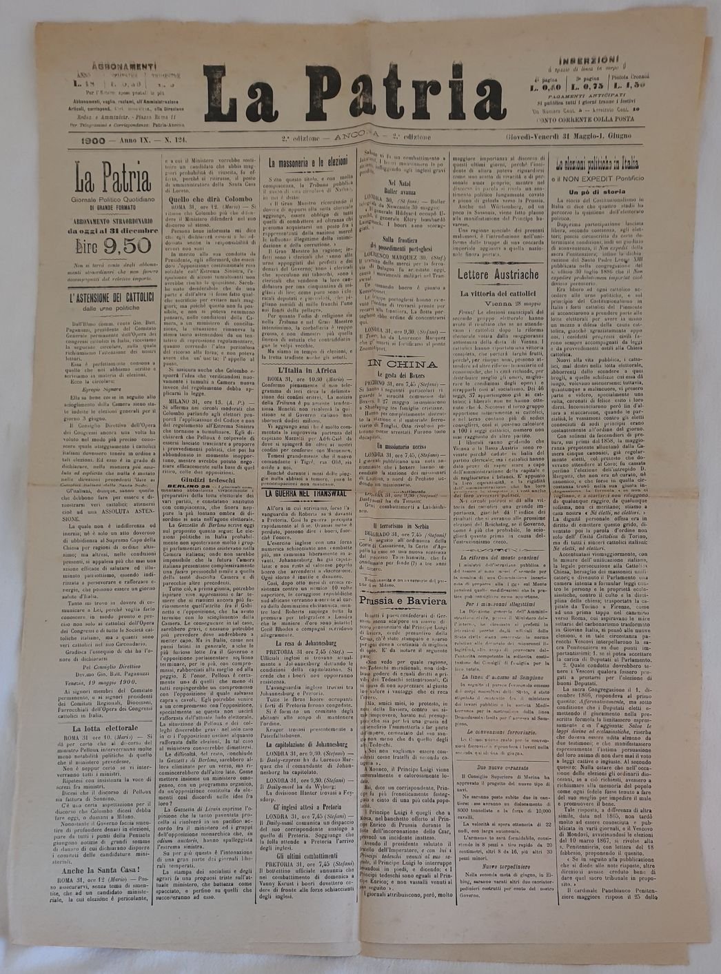 LA PATRIA 1900 - ANNO IX - N. 124 - 2 EDIZIONE ANCONA GIOVEDI VENERDI 31 MAGGIO 1 GIUGNO