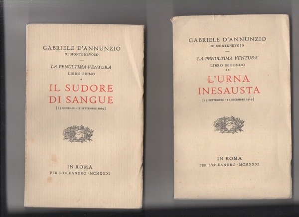 La penultima ventura. Libro primo: Il sudore di sangue (15 gennaio-11 settembre 1919) [Libro secondo: L'urna inesausta (12 settembre - 31 dicembre 1919)]