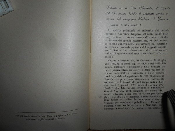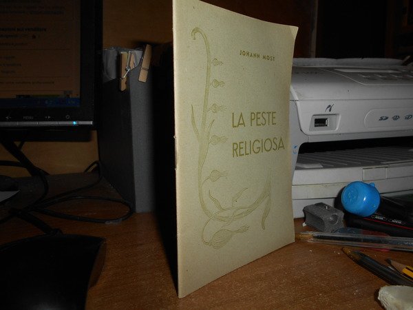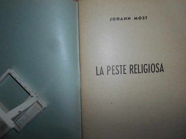 Johann, Most. Senza data, senza Editore, (circa 1930). La Peste Religiosa. In-16° piccolo (15, 50 cm.), br. orig. con punto metallico. 36 pp. Opuscolo ben conservato. Neg. esot. mob. 51 entro busta trasp.