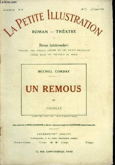 La petite illustration n° 73 série roman n° 31 - Un remous par Michel Corday