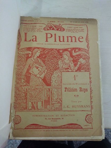 I fascicoli dedicati a Rops sono riuniti e legati in testa, seguono le altre pagine dei numeri di "La Plume" secondo la numerazione editoriale delle pp.: pp.388-514 i fascicoli su Rops, con numerose ill.; pp 515-632 le pagine della rivista. Con un catalogo di 326 opere grafiche di Rops.