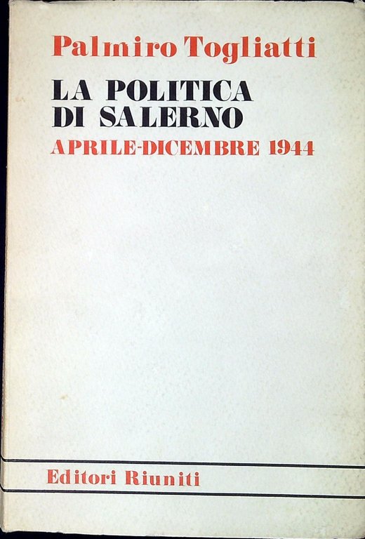 Togliatti, Palmiro La politica di Salerno : aprile-dicembre 1944. Roma, Editori Riuniti 1969, 21 XV, 161 p. XV, 161 p. ; 21 cm (50108)
