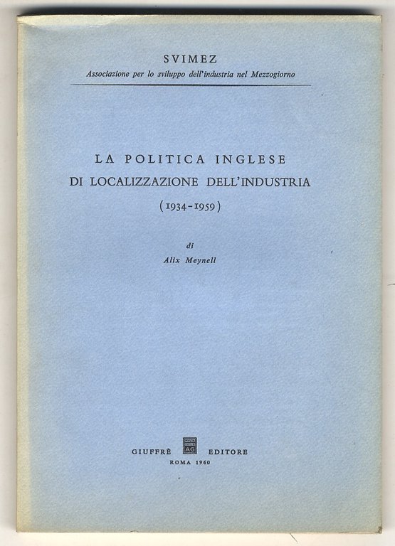 Milano, Giuffrè, 1960, in-8, brossura editoriale, pp. X, 185. Con alcune carte geografiche tematiche. Ottime condizioni.