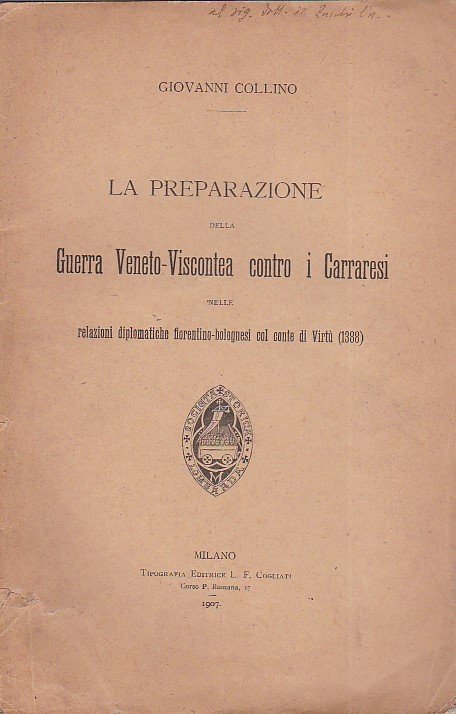 In-8°, pp. 81, brossura editoriale. Dedica autografa dell'Autore al piatto. Ottimo stato. Estratto dall'Archivio Storico Lombardo', a. XXXIV, fasc. XVI.