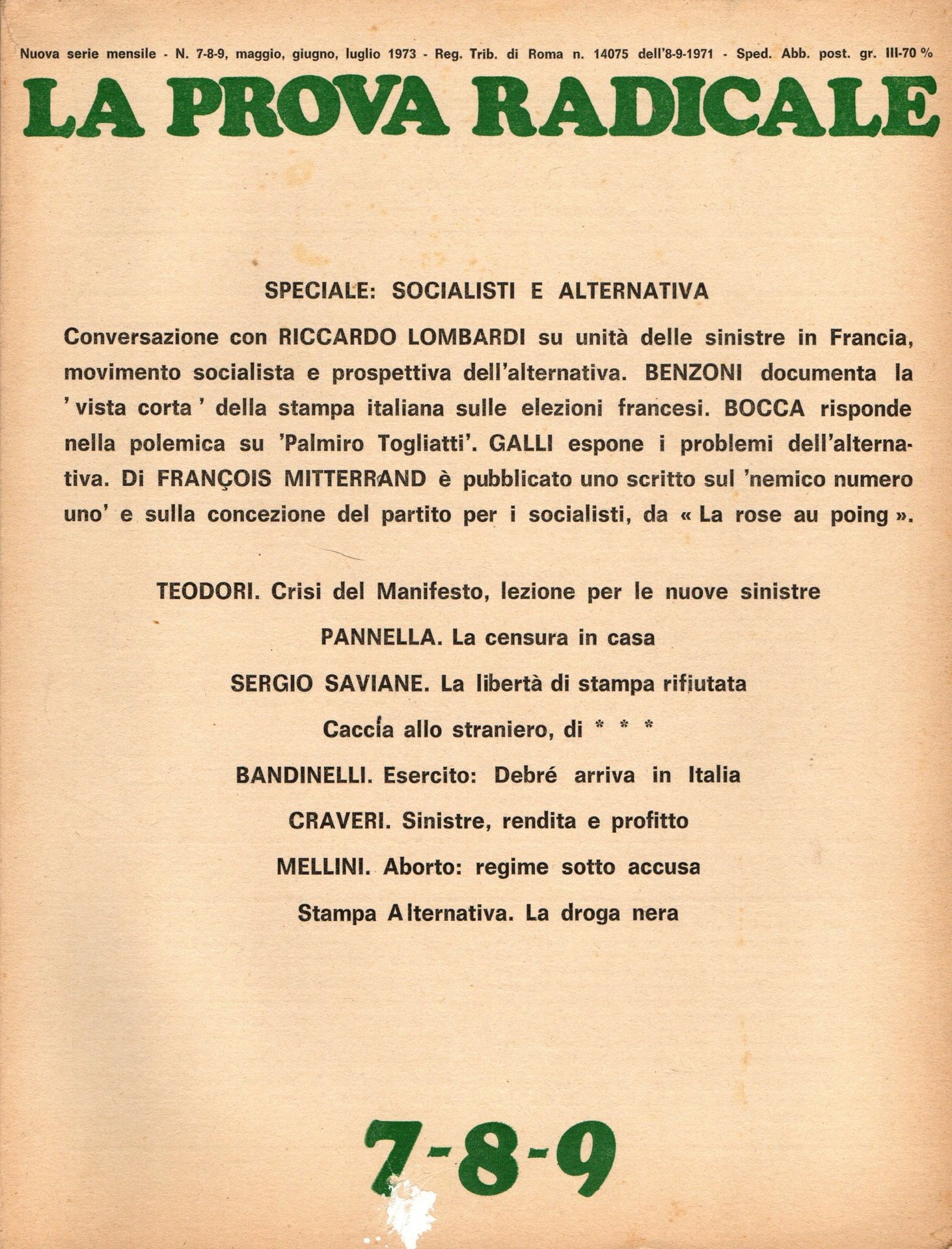 La prova radicale. Nuova serie mensile. Anno II N. 7-8-9. Maggio-Giugno-Luglio 1973