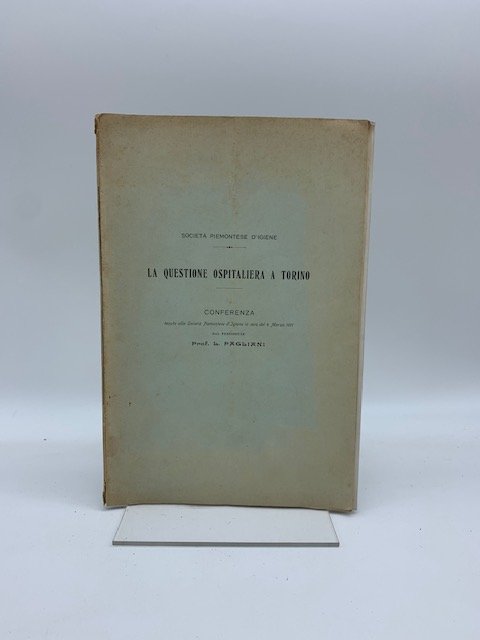 In 8 (cm 17 x 27), pp. 22 con 3 tavole finali con piantine dell'Ospedale S. Giovanni di Torino, dell'Opera di Maternita' e Istituto Ostetrico universitario ed il progetto di massima per un nuovo ospedale generale. Brossura editoriale. Conferenza tenuta presso la Societa' piemontese d'igiene. Pagliani riteneva che le condizioni igienico-sanitarie dell'Ospedale S. Giovanni di Torino e dell'Opera della Maternita' fossero pessime e che fosse pertanto necessario costruire un nuovo ospedale in sostituzione del San Giovanni, della Maternita' e del San Lazzaro cosi' come era necessario dotarsi di una nuova Clinica Universitaria.