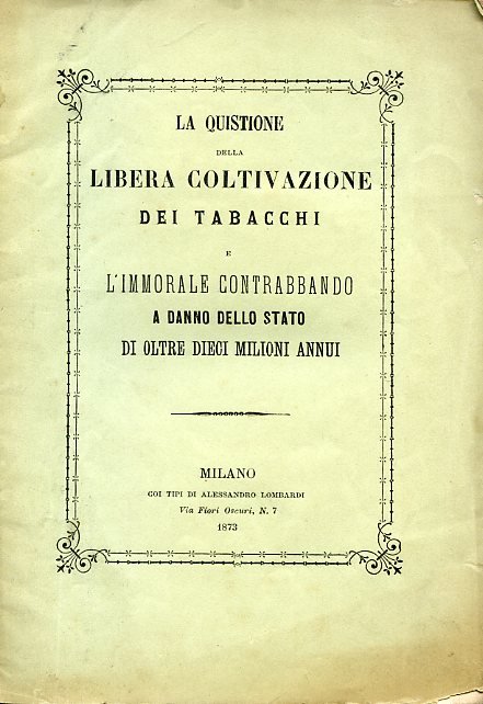 La quistione della libera coltivazione dei tabacchi e l'immorale contrabbando a danno dello Stato di oltre dieci milioni annui