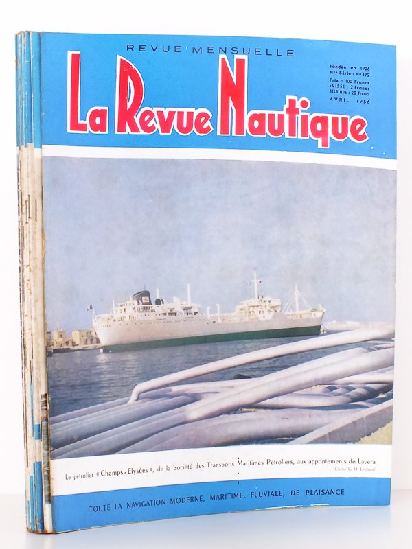 10 vol. in-4 br., couv. ill. couleurs, ill. noir et blanc, La Revue Nautique - Groupe des Publications Roche d'Estrez, Paris, , 24 pp. par numéro. Rappel de la liste des numéros : n° 172. avril 1956 ; 178. Octobre 1956 ; 182. Février 1957 ; 185. Mai 1957 ; 186. Juin 1957 ; 187. Juillet 1957 ; 189. Septembre 1957 ; 190. Octobre 1957 ; 191. Novembre 1957 ; 192. Décembre 1957 Etat très satisfaisant (qques couv. lég. frottées, qques lég. rousseurs, bon état par ailleurs) pour ces exemplaires d'une revue donnant toute l'actualité maritime de l'époque. Prix pour l'ensemble.