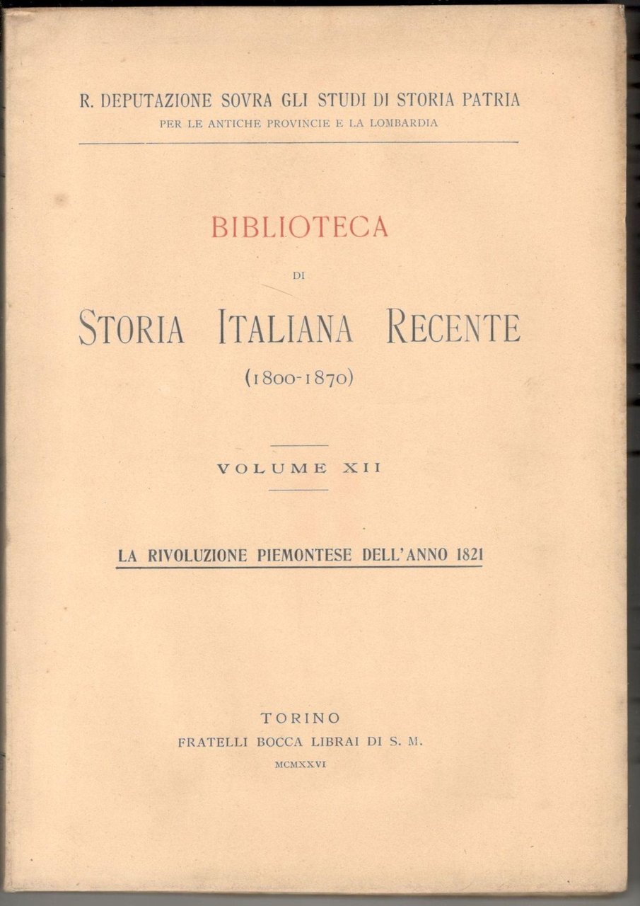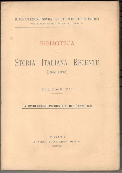 La RIvoluzione Piemontese dell'anno 1821. Biblioteca di storia italiana recente (1800-1870). Volume XII
