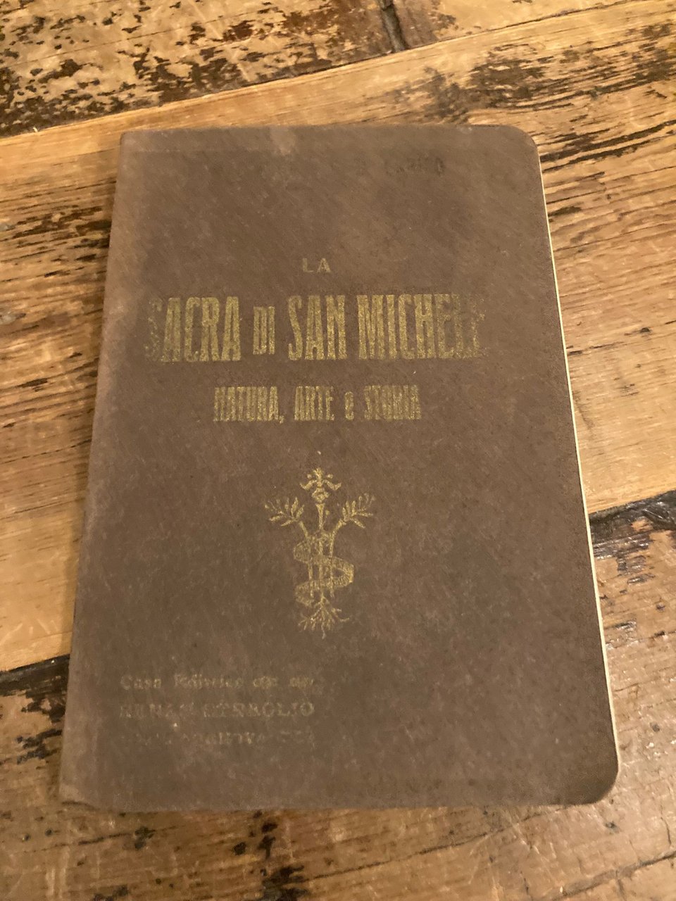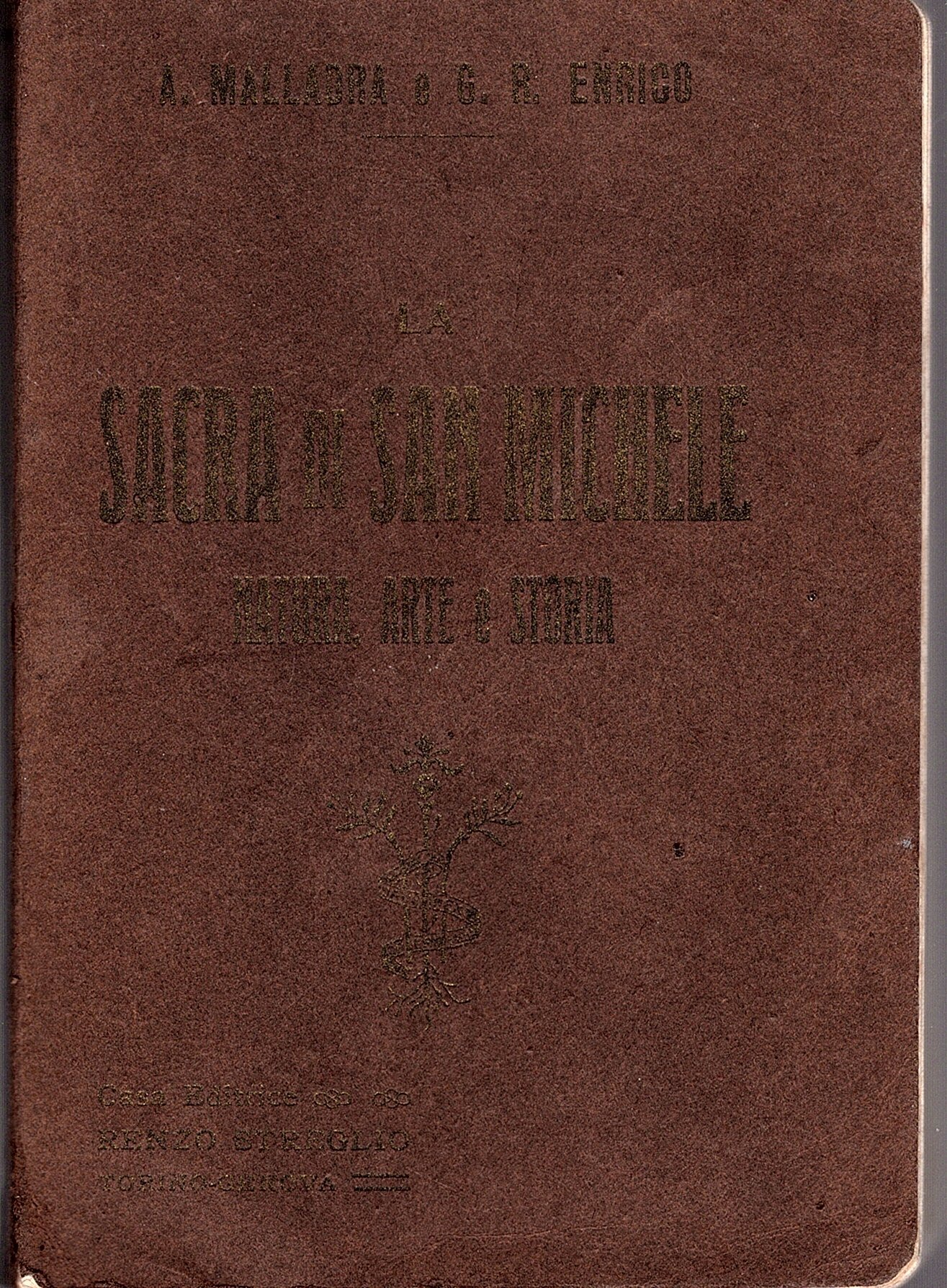 In-16°, pp. VI, (2), 333, (3), cartonatura marrone floscia editoriale con titoli in nero al dorso e dorati al piatto anteriore, angoli smussati. 5 tavv. fotografiche ripiegate f.t. e 124 illustrazioni in b.n., tra disegni e fototipie, intercalate n.t. Più che buon esemplare genuino. Prima edizione di questa bella guida profusamente illustrata, descrittiva delle vicende storico-artistiche della Sacra di San Michele. Non comune, la guida è stata riedita in anastatica a Stresa nel 1998.