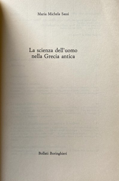 Titolo: La scienza dell'uomo nella Grecia antica