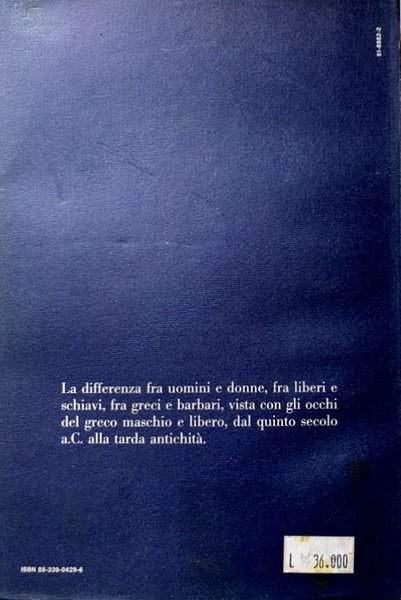 Soggetti: Storia antica, Scienza, Scienze umane, Filosofia, Filologia classica, Etnografia, Fisionomia, Fisiognomica, Maschio greco, Patriarcato, Relazioni, Colori, Natura, Antropologia, Studi classici, Grecia, Ellenismo, Studi culturali, The Science of Man in Ancient Greece, Libri illustrati, Arte, Libri Vintage Fuori catalogo, Saggi, Riferimento, Bibliografia, Cultura greca, Astronomia, Astrologia, Mitologia, Iconografia, Medicina, Etnografia, Differenze di genere, Ruoli sociali, Società, Uomini e donne, Schiavitù, Libertà, Concezioni filosofiche, The Physiognomical Gaze, Framed by the Stars, Reality and Its Classification: Women and Barbarians, Fonti storiche, Storiografia, Erodoto, Platone, Socrate, Posidonio, Tipologie fisiche, Caratteristiche, Corpo, Bambini, Schiavi, Artigiani, Feste, Cerimonie, Onoranze funebri, Funerali, Neri etiopi, Bianchi, Pelle, Emarginazione, Travestimenti, Zoologia, Caratterologia, Aristotele, Embriologia, Simbolismo, Classificazione scientifica, Normalità, Malattia, Umori, Sintomi, Presagi, Profezie, Schematismo, Astri, Simboli, Arti prognostiche, Uccelli, Religione, Riti, Rituali, Adone, Venere, Dèi, Lira, Musica, Nereide, Vestiti femminili, Teatro, Tragedia, Attori, Maschere, Scultura, Cetra, Sileno, Negri, Ganimede, Satiri, Dioniso, Amazzoni, Centauromachia, Frammenti, Testi greci, Alain Corbin, Ecclesiazuse, Aristofane, Odori, Plinio, Pompei, Case, Omero, Apelle, Bernhard Schweitzer, Ritratti, Grottesco, Animali, Vasi, Lotta, Guerre, Achille, Pallore, Naso camuso, Pelle scura, Mentalità, Pregiudizi razziali, Etnocentrismo, razzismo, Vidal-Naquet, Ancient history, Science, Human sciences, Philosophy, Classical philology, Ethnography, Physiognomy, Physiognomy, Greek male, Patriarchy, Relations, Colors, Nature, Anthropology, Classical studies, Greece, Hellenism, Cultural studies, Illustrated books, Out of print books, Essays, Reference, Bibliography, Greek culture, Astronomy, Astrology, Mythology, Iconography, Medicine, Ethnography, Gender differences, Social roles, Society, Men and women, Slavery, Freedom, Philosophical conceptions, Historical sources, Historiography, Herodotus, Plato, Socrates, Posidonium, Physical types, Characteristics, Body, Children, Slaves, Artisans, Parties, Ceremonies, Funeral honors, Funerals, Ethiopian blacks, Whites, Skin, Marginalization, Disguises, Zoology, Characterology, Aristotle, Embryology, Symbolism, Scientific classification, Normality, Illness, Moods, Symptoms, Omens, Prophecies, Schematism, Stars, Symbols, Prognostic Arts, Birds, Religion, Rites, Rituals, Adonis, Venus, Gods, Lyre, Nereid, Female clothes, Theater, Tragedy, Actors, Masks, Sculpture, Zither, Silenus, Ganymede, Satyrs, Dionysus, Amazons, Centauromachy, Fragments, Greek texts, Aristophanes, Smells, Pliny, Pompeii, Houses, Homer, Apelles, Portraits, Grotesque, Animals, Vases, Fight, Wars, Achilles, Pallor, Snub nose, Dark skin, Mindset, Racial prejudices, Ethnocentrism, Racism